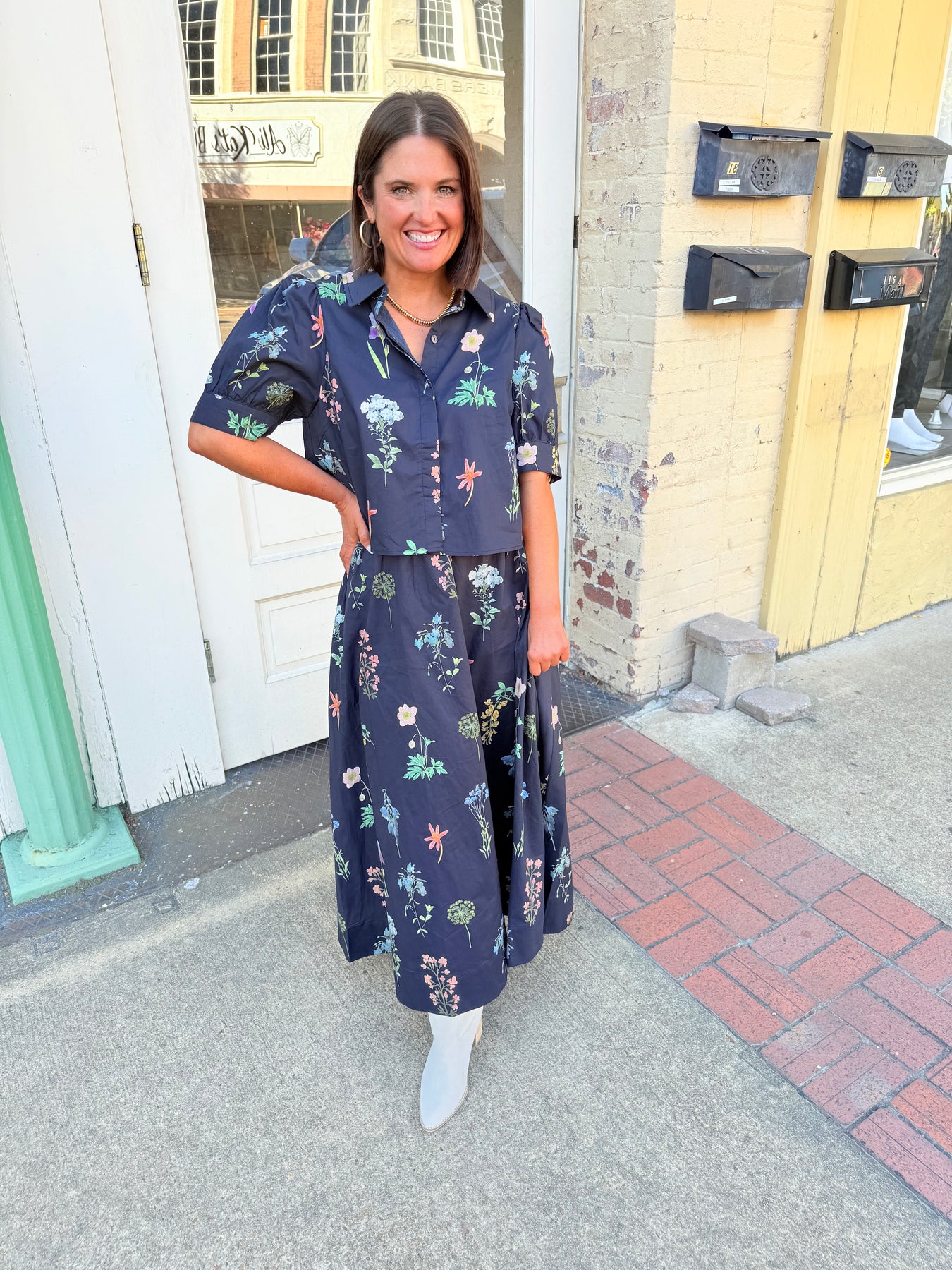Black Floral Midi Skirt Set