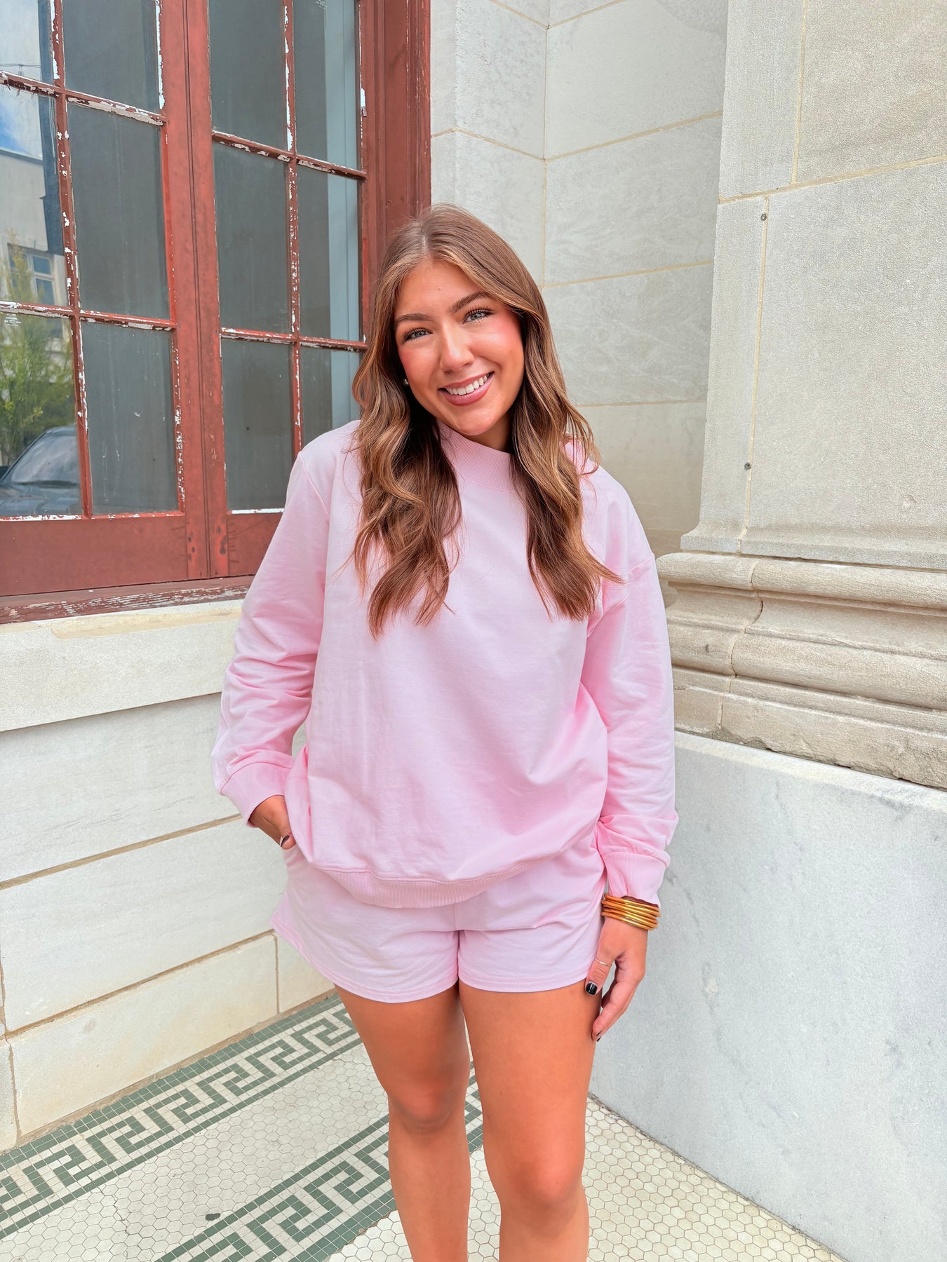 Mock Neck Shorts Set- Pink