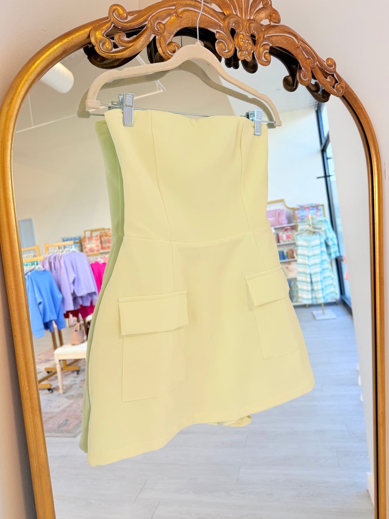 Strapless Front Pocket Skort Dress- Butter Yellow