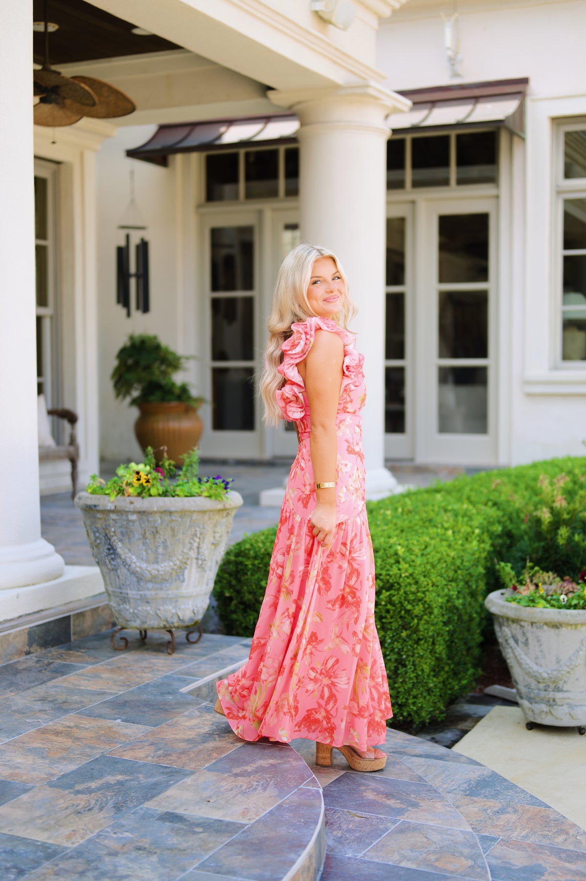 Peach Floral Maxi Dress